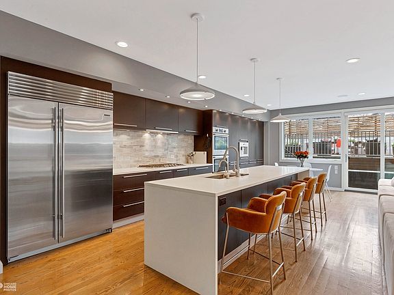 Extra-wide 4,500 square feet in the highly coveted Bucktown neighborhood! 2221 N Leavitt lives larger and more spacious than most single-family homes at the same price point. Like nothing else: exquisite finishes, desirable layout and truly a rare find. The indoors are perfectly complemented by a large front terrace and an expertly designed garage roof deck; perfect for entertaining and enjoying Chicago evenings. Built by Halcyon Builders in 2015. Upon walking in, you will feel the added width. The main level lives like a modern open concept single-family home. The kitchen features custom Italian Vecelli Cucine cabinetry, quartz countertops, built-in espresso and coffee machine, double oven, and premium appliance package including 48-inch stainless steel Sub-Zero. Finally, one will love the outdoor space with easy access to the back garage roof deck or have a seat on your front terrace to watch and chat with your Bucktown neighbors as they walk by. Walking to the lower level, one will experience the open, light filled family room that is open to the first floor. The entire basement has tall ceilings. Five bedrooms, 3 baths, 2 on-suite, and a full laundry room complement this level. The primary has 2 very spacious walk-in designer closets and a bathroom like no other. The luxurious shower wall in the primary bathroom will create an urban oasis. Two large separate vanities and a soaking tub complement the master bath. This 4,500 square foot home, less than 10 years old, is a rare find. Located in one of the best neighborhoods in the city. This fantastic Bucktown location is within the boundary of the desired Pulaski Elementary School. Pulaski Elementary is an International Bachelorette school. Steps to the pool at Holstein Park, popular hiking on the 606 trail, Cortland metra stop which is an 8-minute train ride from downtown or walk five blocks the other way to the blue line. Bucktown's commercial district on Damen Avenue is just 2 short walking blocks away. This home is a must see in a coveted Chicago neighborhood!