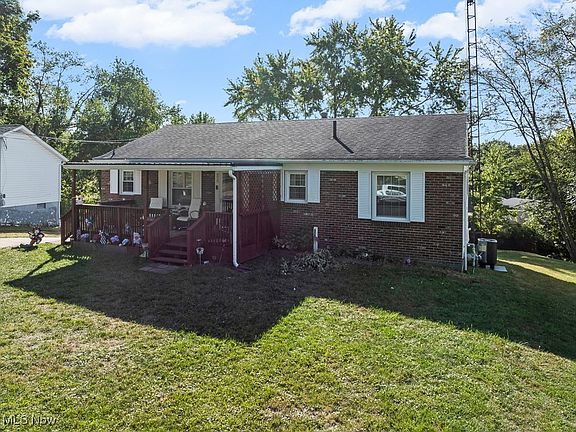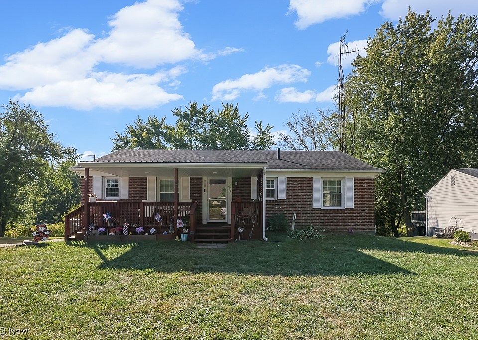 Welcome to this 3 bedroom 1st floor living ranch home! It features a red brick faced front with a cozy covered front porch to enjoy the outdoor relaxation. Inside you will find the kitchen, 3 bedrooms and full bath on main floor highlighted by hardwood floors. Heading to the down stairs you will be treated to a finished rec room, with outside access. Also below the house there is a pull in 2 car garage with basement access. Outside you have a additional 2 car garage and a shed. It is also located nearby to Massillon Paul Brown Stadium just up the street. Well maintained home with a newer furnace and central air. Schedule your showings now this wont last long.