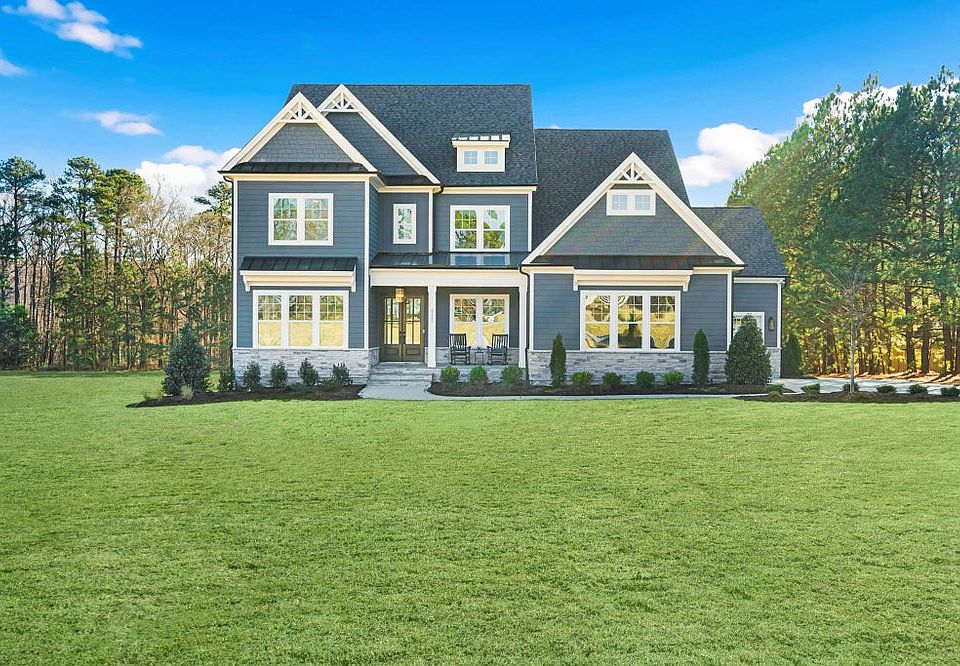 The Chatham floor plan sits on 2.7 acres in the picturesque capital of North Carolina is a wonderful combination of both form and function. Come home to Chatham and come home to a Low Country design style. The Chatham is is part of New Home Inc's exclusive Estate Collection. The home's delightful exterior, with its use of curved archways, soft lines, and stonework and brick mixed with wood detail, is reminiscent of the warmth, charm, and rustic ambiance of the French countryside. This 5 bedroom, 5.5 bath French country designed home starts at 4,808 sq ft. of luxurious living at its finest. The open-concept floor plan was constructed with function in mind with large living areas, storage, a mudroom with messy kitchen, and flexible living spaces. Upon stepping onto the charming front porch of this home and entering the Chatham, a grand and welcoming foyer greets each guest and comfortably ushers them into the beautifully bright, comfortable living room which flows nicely into an open kitchen and a quaint cafe. The kitchen design finishes include an oversized freestanding island with 3-sided seating with sink, stone surface countertops, high-end stainless steel appliances, range as well as hardwood flooring, and recessed and pendant lighting throughout. The spacious main level en suite primary bedroom is a sanctuary for its owners. There is plenty of space to relax and retreat after a long day. Enjoy exquisite finishes in the private en suite bathroom, from lighting to...