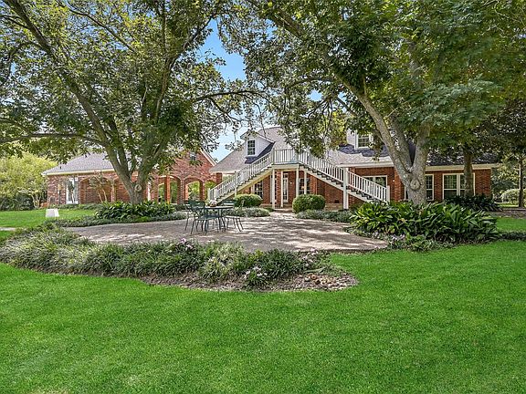 This stunning custom estate home is situated on 5 picturesque acres featuring a pond, barn, & mature shade trees that create a true country retreat. You are welcomed with a circular driveway & an inviting front porch. Inside a formal entry, spacious formal dining room with a wall of custom cabinetry. Elegant library with a stately fireplace & custom bookshelves that span the wall. A casual family room & combination breakfast area with brick flooring & rich brick walls & cozy fireplace with serene views overlooking the property. The heart of the home is this fabulous island kitchen with a view of the pond. Circular staircase leading upstairs. Quartz counters custom cabinetry, beverage AND wine cooler, french doors. Large primary bedroom with adjacent flex room that could be a study. Upstairs you will find another 4 bedrooms, 1 is an ensuite, 2 more bathrooms and 2 flex rooms. An efficiency apt. off the porte cochere PLUS a barn with an upstairs apartment. Fast access to Beltway 8/288.