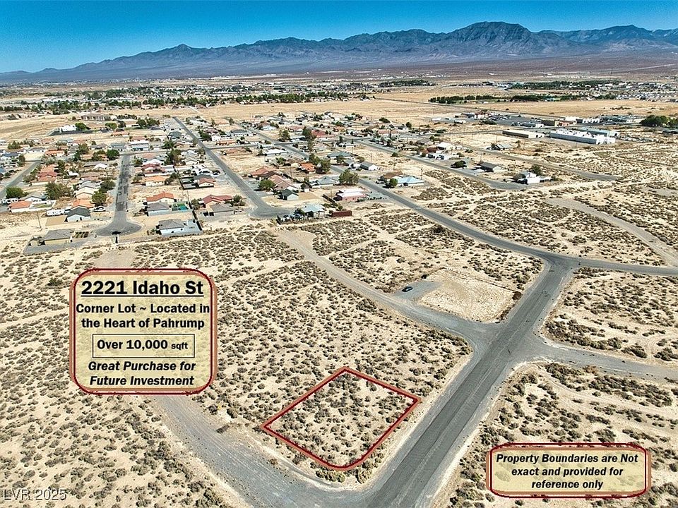 2221 Idaho St, .27 Acres, Beautiful Corner Lot in Located in the heart of Pahrump, NV. The town that is known for its suburban/rural lifestyle with a lower cost of living and only 1 hour away from Las Vegas. As the population grows and demand increases this is a great investment option. Make your offer today!