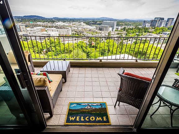 Welcome to your dream condo located in the Grant Tower of the prestigious American Plaza Towers community! Prepare to be mesmerized by the unbelievable views that await you - take in the majestic sights of Mount Hood, the serene Willamette River, the iconic Tillicum Bridge, and the vibrant South Waterfront right from the comfort of your living space. Step inside to discover an open and light-filled floor plan, thoughtfully designed to maximize both space and comfort. Cozy up next to the fireplace in the living room on cooler evenings or enjoy the seamless indoor-outdoor living experience by stepping out to the large view deck accessible from the living room and primary bedroom. The second bedroom is cleverly equipped with a Murphy bed, providing versatility for your needs & guests. The condo also comes with a deed parking space #15 and a generously sized storage unit B-3 #6, ensuring convenience and ample space for your belongings. Investment potential is excellent, as there is no rental cap for the building. With 53 guest parking spaces available, your visitors will always have a place to park comfortably. For added peace of mind, 24/7 concierge and security services are provided. Indulge in an array of amenities within the community, including an outdoor pool, a newly renovated indoor pool, saunas, locker room and meeting rooms equipped with kitchens perfect for hosting gatherings or events. Conveniently located on the Max and bus line, transportation will never be an issue. And for those associated with Oregon Health & Science University (OHSU), you'll be delighted to know that it's just a 5-minute drive. This luxurious condo has an option to be FULLY FURNISHED with outstanding decor, offering a turnkey solution for your new home or investment property, Lease to own is an Option to consider starting Jan 1 2026 $3200 a month