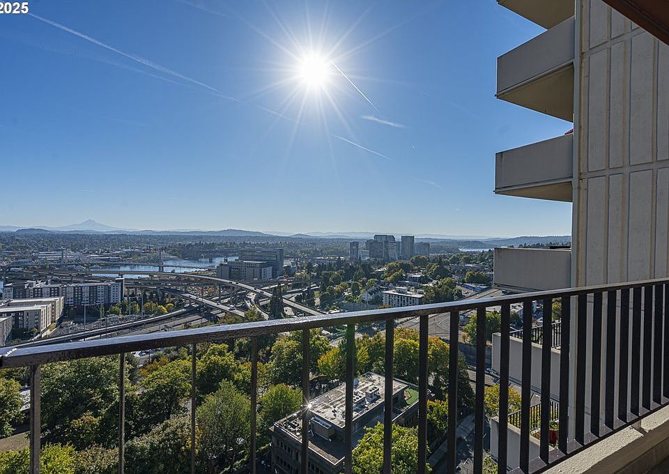 Perched on the 21st floor of the coveted American Plaza Towers, this contemporary condo offers panoramic views that redefine city living. With balconies on both the east and west sides, you’ll wake to serene river and mountain vistas and wind down with dazzling sunsets and twinkling city lights—every room is framed by breathtaking scenery.Inside, the open floorplan is thoughtfully updated for modern comfort and style. Marble countertops, sleek stainless steel cabinetry, open shelving, and premium stainless appliances—including a wine fridge and convection oven—create a kitchen that’s as functional as it is beautiful. The primary suite is a private retreat, featuring a walk-in shower and dual stainless vanity for a spa-like experience.The Plaza is a full-service community that elevates your lifestyle with secure garage parking, indoor and outdoor pools, hot tubs, saunas, a fully equipped cardio/weight training gym, and 24/7 security and concierge services. Whether you're entertaining, relaxing, or working from home, this condo in the sky offers the perfect blend of luxury, convenience, and stunning Portland views.