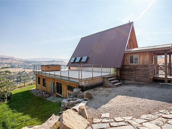 Surround yourself in privacy with spectacular views of the Wenatchee River and mountains throughout the valley on this 3.75 acre parcel. Just minutes from town, this cozy A-Frame is sure to impress. With a nearly 800sqft deck, the views and opportunities are endless. A large 30x40 concrete pad sits next to the house, ready for a shop, garage or anything to fit your liking. Raised garden beds, chicken coup and greenhouse included too!