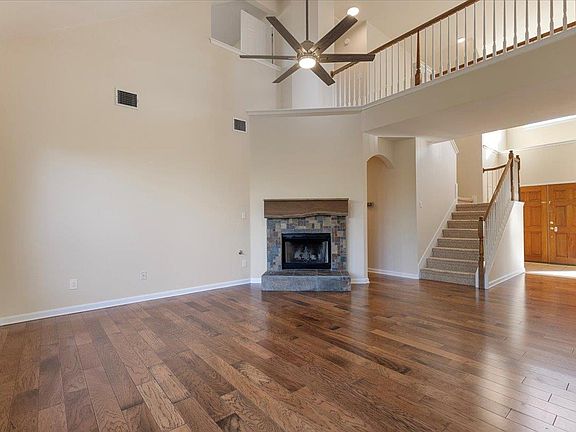 Cozy fireplaceBrick exteriorFormal dining roomPrivate en-suite bathQuartz countertopsNatural lightCovered back patio