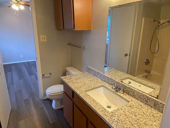 Vinyl plank flooringHalf bathroom for guestsConnecting bathroomTwo parking spaces