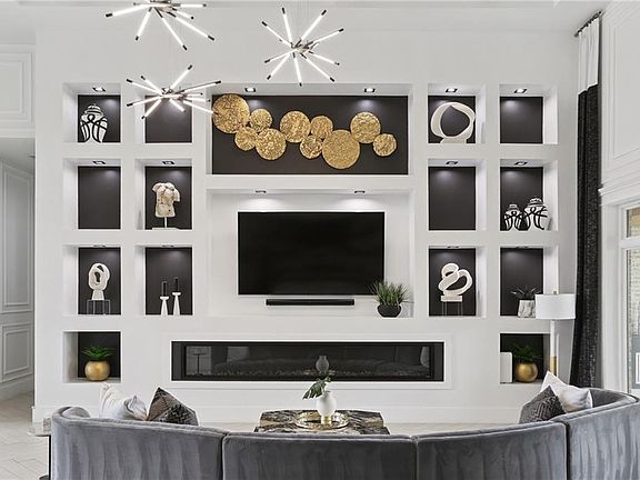 Experience the pinnacle of modern luxury in this dazzling 5-bed, 6.5-bath, 4,902 sq ft residence. Built in 2023, this bespoke home offers impeccable detail on a pristine lakefront lot. Captivating views greet you from the moment you enter, with oversized windows framed by soaring ceilings and a grand open floor plan. Culinary enthusiasts will be captivated by double quartz islands, dual refrigerators, Z-Line gas range and a separate scullery outfitted with an additional refrigerator, gas cooktop, open shelving and generous storage. A glass wine cellar offers both sophistication and function, transforming your collection into a stunning centerpiece for entertaining. The primary suite is a private retreat complete with sitting area overlooking the water, a spa-like bathroom with dual vanities, wet room with oversized separate soaking tub and dual walk-in closets. A private guest wing with additional bedrooms provides comfort and privacy, creating the perfect retreat for family and friends, while an upstairs flex space offers room for a fifth bedroom, work or wellness. Enjoy the convenience of whole home audio and video automation and surround sound. Outside, your private waterfront backyard awaits, with oversized covered patio and gourmet outdoor kitchen providing unsurpassed outdoor living. Located within a gated, guard-protected community, enjoy both peace of mind and a strong sense of neighborhood where modern luxury meets everyday living.