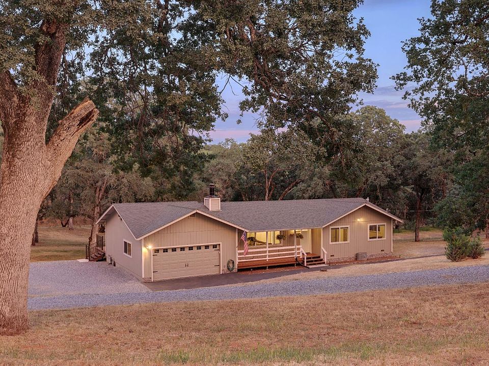 Imagine living peacefully on your very own 5-acre property amongst towering Oaks! This property has so much to offer, including a 3-bedroom, 2.5 bath primary home; a 2-car detached garage/workshop; a storage shed; a covered grain storage area; & a covered equipment storage facility with cement pad & electricity. The main house has an updated kitchen, maple cabinetry, granite counters and a spacious walk-in pantry. Luxury vinyl plank flooring runs throughout the main living areas. Enjoy gathering in the family room around the brick fireplace with insert. Dining is available in the kitchen at the table or dining bar, or outside on the back balcony. All bedrooms are carpeted and have ceiling fans, custom closet doors and new window blinds. The primary bedroom has an ensuite bathroom with shower stall. The other two bedrooms share a hall bathroom that has a tub with shower over. There is a half bath by the laundry room, and a mudroom off the garage that provides outside access to the spacious back balcony. This mudroom could also be used as a home office or 4th bedroom. The attached 2-car garage has a newer garage door & opening system. The back balcony is a showstopper with quality Trex decking, iron railing, a shade cover and cafe lights. This is an exquisite place to live.