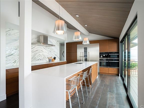 Welcome home to this 2017 custom built contemporary masterpiece. This 4 bedroom 3.5 bathroom home has all the bells and whistles of indoor outdoor living, ocean views, quiet treelined street, in one of PVE's most prestigious areas. Cherry trees welcome you as you park into a pristine garage that boast ocean views. The beautiful glass modern door opens to high redwood vaulted ceiling which set the stage for an incredible open living space with an abundance of natural light. Wide plank french oak wood floors throughout this 2,854 soft home. Fleetwood doors that completely open to an incredible deck where you can sit and watch the ocean. This gourmet kitchen is a dream. Cabinets made of rift cut oak and walnut, marble/cesar stone thoughout. Kitchen appliance include a Gaggenau cooktop with teppanyaki grill, Miele built-in convection ovens, microwave, dishwasher and coffee maker. Built-in Thermador refrigerator, freezer, and wine fridge. Three bedrooms on the top floor, two having ocean views and all with custom closets. The master bath is a contemporary dream with a soaking tub and extra large shower. Down the stairs you find another family room with fleetwood doors that opens to an enormous private yard. This level has the fourth bedroom with its own en suite bath. Laundry room is also located on this level. Entire home has water filtration system, 2 HVAC units, tankless water heater and wired for TV and internet. Don't miss this opportunity, it won't last.