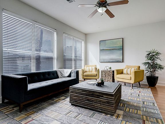 - Exterior features: Barbecue, Bicycle storage, Business Center, Cafe and bar with indoor and al fresco dining, Co-working spaces, Demo kitchen, Garden-style soaking tubs, Keyless Entry System, Locally sourced, white wood-grain cabinets, Mecho rollers shades, Minutes from Buffalo Bayou Park, Online Payments available, Package Receiving, Pet Park, Quartz Countertops and backsplash, Short-term leasing available, Upgraded lighting to enhance ambiance, View Type: Panoramic views of downtown Houston, Yoga Studio