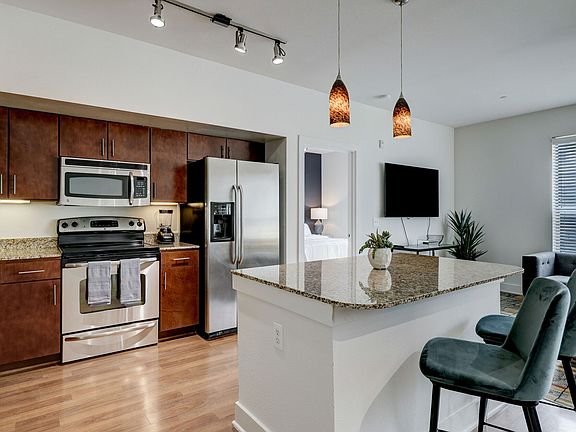 Come home to newly designed Montrose one and two bedroom apartments with chef-inspired kitchens. The white-wood cabinetry, stainless-steel appliances, and charcoal quartz countertops with white veining make for an ultra-luxe cooking and entertaining space. All homes feature 9' and 10' ceilings, an abundance of natural light, and Swiss Krono Oak wood flooring throughout.