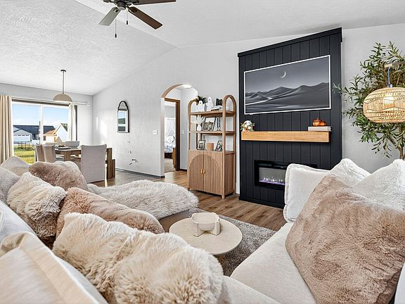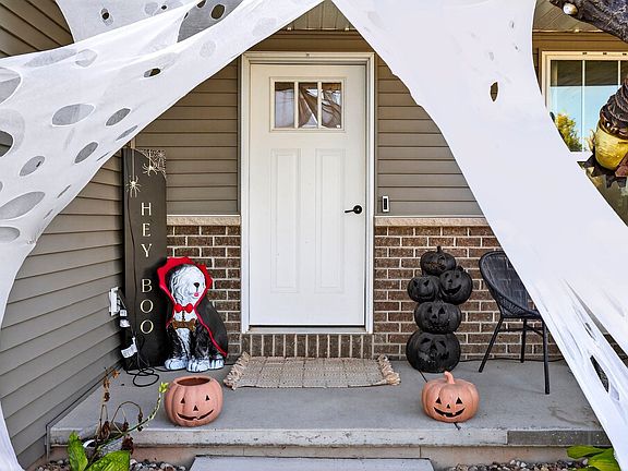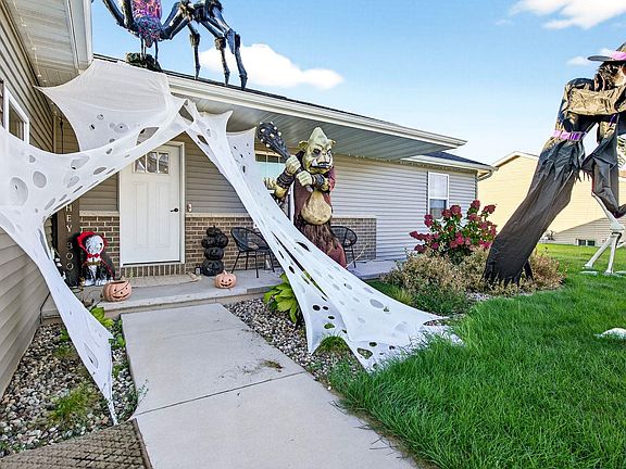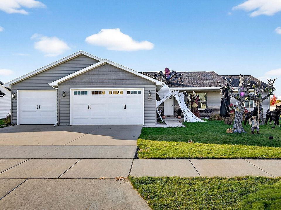 This boo-tiful ranch is a whole vibe! The Halloween-ready exterior sets the tone for a well loved home that blends cozy & modern. Fall in love with the partially brick exterior, welcoming front porch, and attached 3-car garage. The vaulted ceiling and electric fireplace make for a stunning open-concept look. The kitchen features stainless steel appliances, a breakfast bar, and flows seamlessly into the dining area with a patio door. The primary has a walk-in closet & en suite, while first-floor laundry adds even more convenience to your daily routine. Outside, the magic continues with a concrete patio, pergola, & hot tub. There's a second patio off the garage, perfect for grilling on these fall nights. It's the kind of place where every season feels a little more magical.