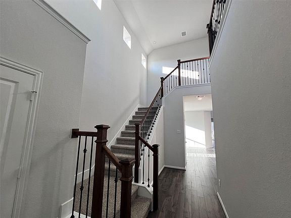 Discover Cypress Green, a beautiful master-planned community in Hockley, TX, offering the perfect blend of peaceful small-town charm and modern conveniences! Ideally located near HWY 290 and HWY 249, you'll enjoy easy access to major highways, shopping, dining & entertainment. This NEW construction Wayfinder plan features 4 bedrooms, 3.5 baths, a spacious game room & thoughtful design throughout. The open kitchen is light and bright, featuring a stylish gray backsplash, custom wood cabinetry, sleek granite countertops & stainless-steel appliances. Luxury laminate flooring extends throughout the main living areas for a cohesive look, with tile in all wet zones for easy maintenance. The spacious primary suite is located on the first floor & includes a must-see closet & a spacious ensuite bathroom. Upstairs, you'll find all secondary rooms & a versatile game room. Step outside to a covered patio, fully sodded yard & a sprinkler system. Home is estimated for a September 2025 completion!