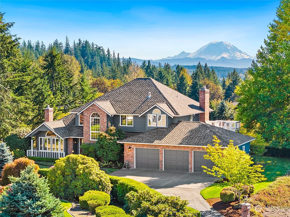 Welcome to this desirable 3,140 sqft home in Highlands of Cedar River w/shy acre of land w/stunning Mt Rainier views from nearly every room. Everything updated. Beautiful chef’s kitchen w/lg island, state-of-the-art induction cooktop, dbl ovens, walk-in pantry & separate eating area. Formal dining is host’s dream, while the living & family rooms, each w/brick FP create cozy ambiance. Luxurious owner suite includes FP, spa-like ensuite bath w/clawfoot tub, heated floors, WIC & private deck. 2 more beds, a den/office & 1.5 baths provide ample space. Utility/mud rm offers convenience & 3-car garage, RV parking & peaceful backyard oasis add to the home's appeal. Highly rated Tahoma schools. Hurry to see as there is no delayed offer review date!