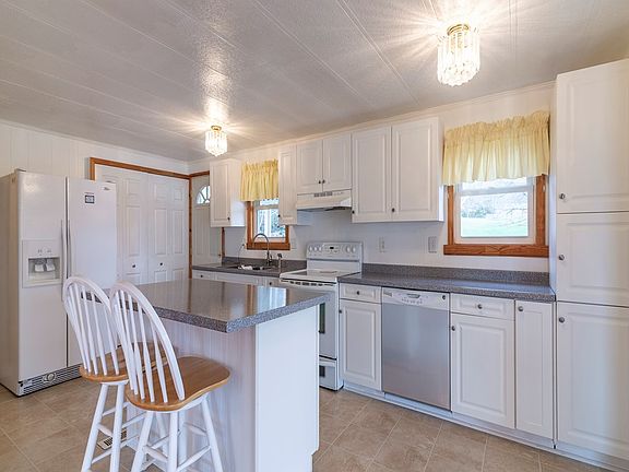 2 bedroom, 1.5 bathroom with jacuzzi tub, Kitchen, Dining Room, Living Room, Carport, 3 decks, a little over an acre of land. Has heat pump as well as propane heat, walk in closet that can be used for utility room. Washer, dryer, stove and refrigerator included.