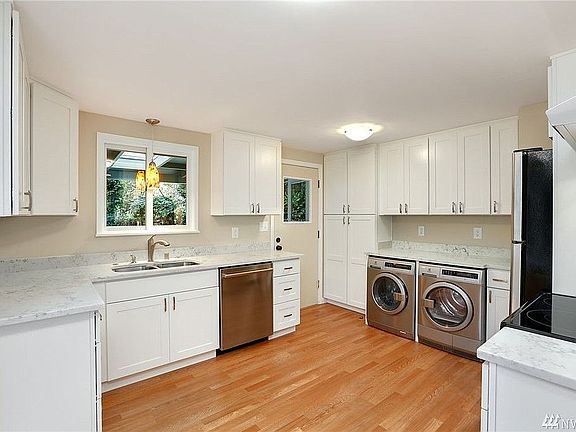 Gorgeous Classic Cottage! All New, floor to ceiling. Sparkling kitchen remodel: Solid Quartz counters, Stainless appliances, new Cabinets. Wood burning fireplace, new brick surround. Ceiling lights. Front windows view protected evergreens of newly renovated Esperance Park. Rear views large green backyard, which feels like an urban oasis. Bonus light filled studio off garage. Single garage provides a secure private entry to backyard and home. Perfect location, easy access to 99& I-5.