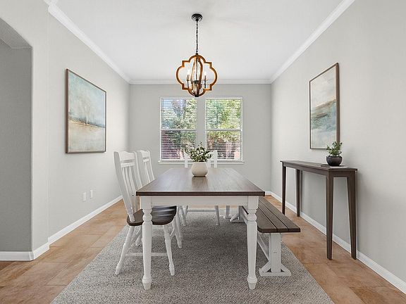 Fresh interior paintStainless steel appliancesNew wood-look tile flooringElegant formal diningSpacious family roomCovered patioSoaking tub