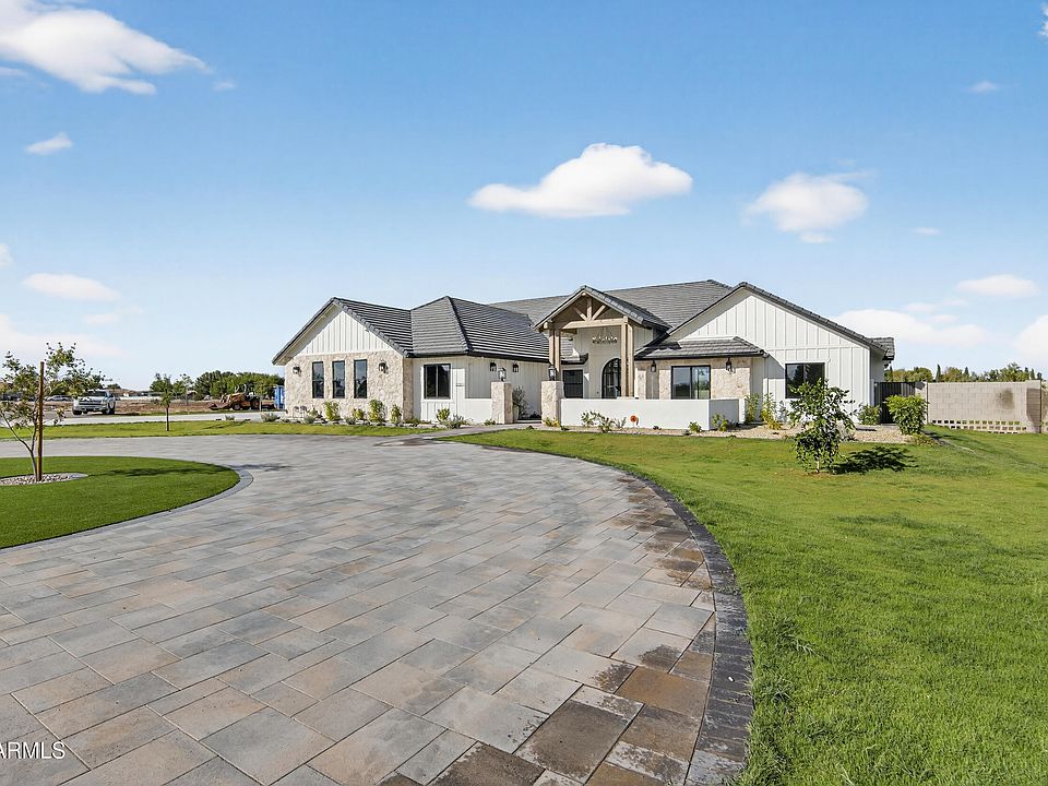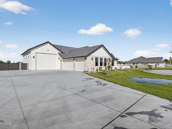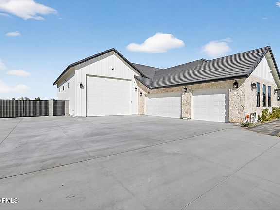 Welcome to this brand-new home in New Cloud Creek, featuring an oversized RV garage, private casita, 14' ceilings, and premium upgrades. Enjoy 5 bedrooms and 3.5 baths, an open layout, and a gourmet kitchen with quartzite counters, a large island, custom cabinets with gold accents, and a Wolf gas range. The spacious main bedroom includes room for a sitting area and sliders to the patio and pool. The main bath offers dual sinks, a walk-in shower, and a soaking tub. Additional highlights include an office/den, home theater, pool, hot tub, and the impressive RV garage.