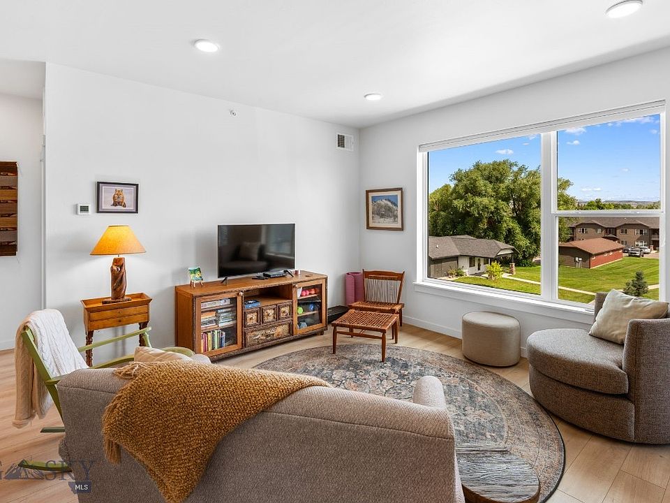 Welcome to this immaculate, top floor, 3 bedroom condo in the heart of Livingston, Montana, offering a perfect blend of modern comfort, functionality, and location. Light, bright and beautifully maintained, this unit features a thoughtfully designed layout with quality finishes and details throughout. Enjoy a spacious open concept living area with abundant natural light. The kitchen is equipped with modern appliances, sleek cabinetry, and a large island- ideal for entertaining or casual meals. Step outside to your private covered balcony- perfect for enjoying your morning coffee or unwinding in the evenings. The primary suite includes a walk-in closet and a well-appointed ensuite bathroom, while two additional bedrooms offer space for guests, a home office, or hobbies. A detached garage provides convenience, extra storage, and protection from the elements year-round. This quiet, well-maintained building is located near Livingston's many trails, parks, schools, shopping, and limitless recreation opportunities. Situated a short ways away from Yellowstone National Park's northern entrance, the town of Livingston has earned national acclaim for its stunning mountain vistas, eclectic downtown area, and prime location near Montana's most iconic outdoor activities.