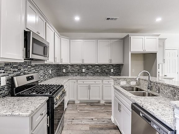 Neutral paintGranite countersStone backsplashTray ceilingsGated drivewayDecorative lightingOpen concept living