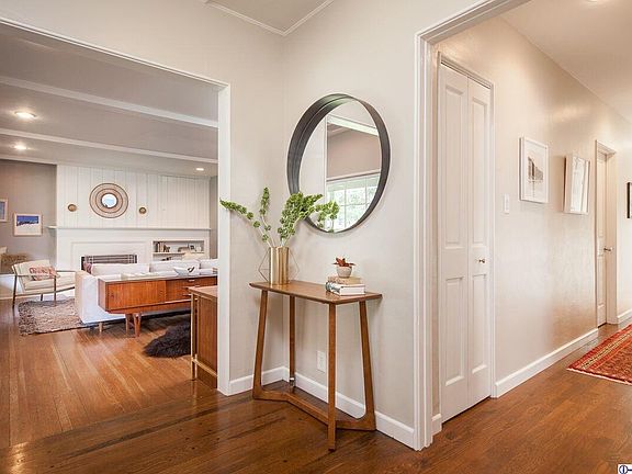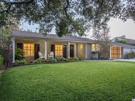 Located on a beautiful oak tree-lined street in the Brigden Ranch neighborhood, this California ranch home incorporates original architectural details with modern upgrades. The classic floor plan features four bedrooms, two and a half baths, a spacious sunken living room with wood-burning fireplace, and a formal dining room. The light-filled kitchen has been updated with custom cabinetry, quartz countertops and terrazzo tile floors. The home's master suite includes a walk-in closet, ceramic tiled en-suite bathroom and doors to a private courtyard shared with the living room. Original oak floors, multi-paned wood windows, crown moldings, wainscoting and built-in cabinetry are some of the period details found throughout the home. A canopy of oak trees surrounds the expansive, private backyard. The outdoor space is thoughtfully defined by an integration of materials including a decomposed granite path, drought-tolerant landscaping, and a brick patio perfect for entertaining.