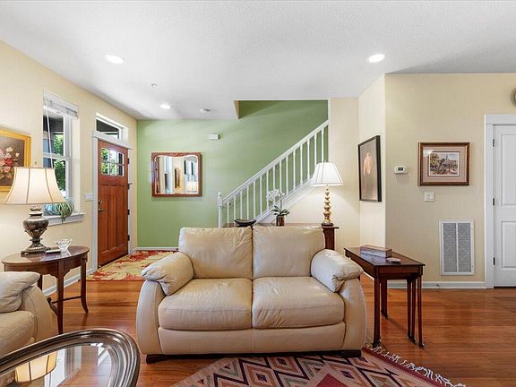 Discover the perfect blend of tranquility and convenience in this elegantly renovated townhouse. This tasteful property showcases exceptionally durable Brazilian mahogany floors and mountain views from every window. Main level boasts high ceilings, a stunning granite surround electric fireplace, a nice sized half bath, and a gourmet kitchen complete with granite countertops, tiled backsplash, gas range, and a spacious breakfast bar. Off the kitchen, relax on the charming and sunlit back patio that features extended hardscaping, a retractable awning and convenient ingress/egress. Upstairs, discover the reading room with access to the scenic balcony. The primary bedroom features an ensuite bathroom and walk-in closet. The guest bedroom with a walk-in closet is next to the second full bathroom and the convenient laundry room. Located within walking distance to the YMCA & grocery shopping while being just a seven minute drive to Ashland's plaza.