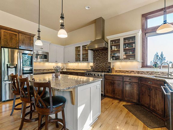 This craftsman style home is located in prime Northwest Bend minutes from the Deschutes River and all that Westside Bend has to offer. Upon entering the home, you will be greeted by grand tall ceilings and real wood flooring. There is a loft/office area located on the 3rd floor. The private master suite features a gas fireplace, large walk in closet, tile shower, double vanity and soaking tub. With over 2818 SF, this home offers solid core stained doors and trim throughout, stunning kitchen cabinetry, a New LG smart fridge, 6 Burner 48 inch Viking Range and Range hood, Built in cabinetry in the living room, many large windows that bring in tons of natural light, two 2nd story patios, lots of storage, New Garage Door, New Heat Pump, AC, Central Vacuum System, oversized water tank and a Laundry Chute. The exterior was masterfully crafted with the stunning wood accent wall on the front of the house! There is a 3 car garage and a large brick driveway that can fit up to 4 cars or an RV.
