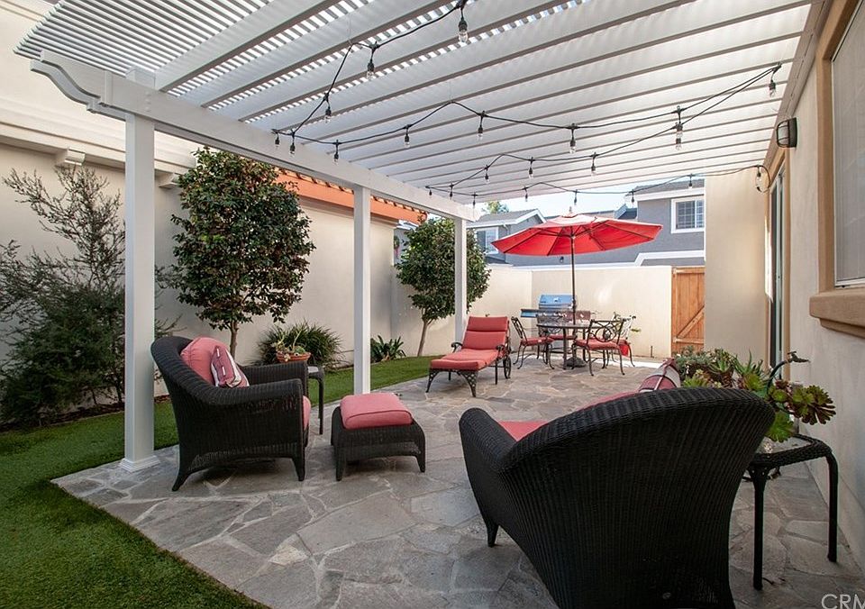Townhome has many upgrades including a Café Lighted Pergola on a flagstone patio. Wonderful area for entertaining or a private retreat. Ideal play area for the little ones. There is direct access from the living room, kitchen and dining area through the new doors into the backyard.. Kitchen has been remodeled and has a new soffit with cam lighting and crown molding. New granite countertops with new fixtures and a new deep sink. New Viking 6-burner cooktop, microwave and hood. Kitchen oak cabinets all have roll-out drawers. Sellers added a built-in buffet to the dining area and a beautiful Italian light fixture.Master bedroom en-suite has a cozy fireplace, a clerestory window, walk-in closed plus two additional mirrored closets. Master bath completely remodeled. Updates include granite countertops, new shower, new fixtures, new top mounted his and her sinks. Added rain forest glass to bathroom windows. Tiled walls over bathtub and shower. Added a new Dual Zone Heating/AC System with two registers. New 50-gal water heater. Sale includes a 30 cu ft. side-by-side LG refrigerator, and LG washer & Dryer & two small wall mounted TVs.