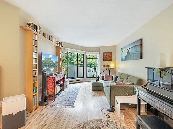 Welcome to this large 1 bedroom + 1 bath home strategically located above the building's lobby (no downstairs neighbors!) in the heart of Mount Pleasant. The building is surrounded by trees which offers great privacy yet the condo faces west so it gets plenty of light year round. Updated flooring and a functional kitchen + large walk in pantry. A huge bedroom with ample closet space and secondary access to the your private balcony, perfect for relaxing. 1 parking + 1 big storage locker + secured bike room too. The building also offers a shared rooftop patio perfect for summer gatherings. Steps to Main Street’s trendy shops, restaurants, cafes, breweries, and transit. A pet-friendly building in a vibrant, highly walkable neighborhood. The location can't be beat!