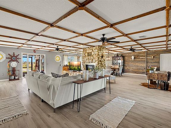 Country Charm Meets Modern Luxury! Welcome to your private oasis! This concrete block, single family home offers the perfect blend of luxury and country charm. Situated on 5 fully fenced acres, this property features a large workshop, greenhouse and tranquil pond, creating a serene retreat with room to live, work and play. Inside you will find 3 spacious bedrooms and 2 baths, a formal dining room and a cozy breakfast area overlooking the peaceful property. The home has been beautifully updated with a new kitchen, featuring custom cabinetry and stainless-steel appliances. Enjoy peace of mind with all new electrical wiring, complete replumbing, updated well equipment and newer AC Unit (16 seer) - every major system has been taken care of for you. The metal roof ensures durability and low maintenance for years to come. Luxuriously decorated with a warm welcoming vibe, this home is ready for its next owner to enjoy. Located in zone X (no flood insurance required!), you can rest easy knowing your home is safe and secure. Whether you are looking for space to garden, a place to have your horses or simply a quiet country escape, this property has it all. Schedule your private showing today and experience country living at its finest!