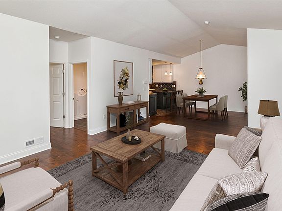 Welcome to this charming ranch-style townhome nestled in a quiet, friendly neighborhood with beautiful green space. The smart, split-bedroom floor plan offers privacy, with bedrooms on opposite sides of the home. The main living area features hardwood flooring that flows seamlessly into the dining area and kitchen. You'll love the white cabinets that extend to the ceiling, tile backsplash, and tile flooring. The spacious primary suite includes a large walk-in closet and an en suite bath. A two-car attached garage adds convenience, and the covered front porch and extended concrete patio offer great outdoor living space. The home is close to walking trails that lead to Sawgrass Park, complete with a serene pond and peaceful pathways.Enjoy close proximity to shopping, dining, and easy interstate access for a quick commute. This low-maintenance home offers the perfect blend of comfort, location, and lifestyle. Come take a look!