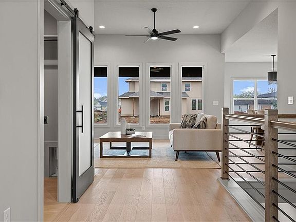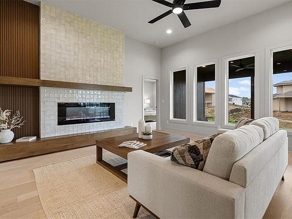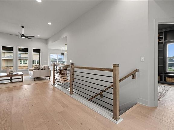 This is the beautiful Somerset Modern floor plan Elevate Design+Build. This spacious, 4-bedroom, 3-bath home with a 3-car garage offers a perfect blend of comfort and style. The modern front elevation is a refreshing site! Enter through the beautiful double doors into the open foyer that flows directly into the living room and large kitchen, featuring a butler's pantry and a walk-in pantry. After dinner, spend time relaxing in the huge lower-level rec room: Great for all of your Chiefs Watch Parties! Need to do laundry? No problem…the washer and dryer are conveniently located within the primary bedroom suite which also includes a large walk-in closet and a spa-like primary bath, complete with a luxurious soaking tub. Work from home? Your “commute” to the home office is short: there is a dedicated office space on the main level. This home is thoughtfully designed with modern touches inside & out.