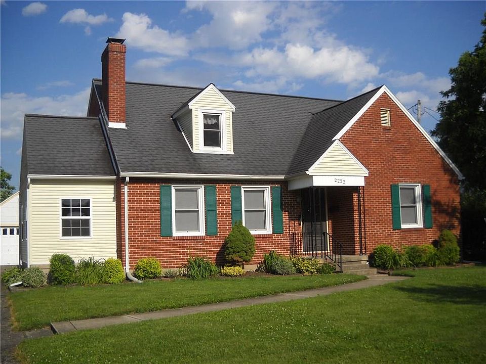 COMFORTABLE Cape Cod styled brick that has been FRESHENED UP & ready for a new owner! Classic curb appeal matches the polished interior of this easy living space. Enter an OVERSIZED living room paved w/ natural hardwood flooring & featuring a woodburnng fireplace flanked by built-in shelving. Access to the 8x15 enclosed porch for added living space. LARGE dining room makes a GREAT entertaining place w/BIG picture window viewing backyard. Built in cabinetry. 2 secondary bedrooms & full bath finish out the main floor. The ENORMOUS half story offers a spacious bedroom complete w/ a 8x11 walk in closet PLUS other storage. The full unfinished basement is a BLANK CANVAS for more living space to be created! Outdoor living space offers an expansive deck in a fenced yard. BIG 2 car detached garage. IMPROVEMENTS: vinyl replacement windows '13 & '14. Interior freshly painted, basement floors & walls along w/ garage-May'17. Water heater 5/'15. Be the 1st to get in this convenient location!