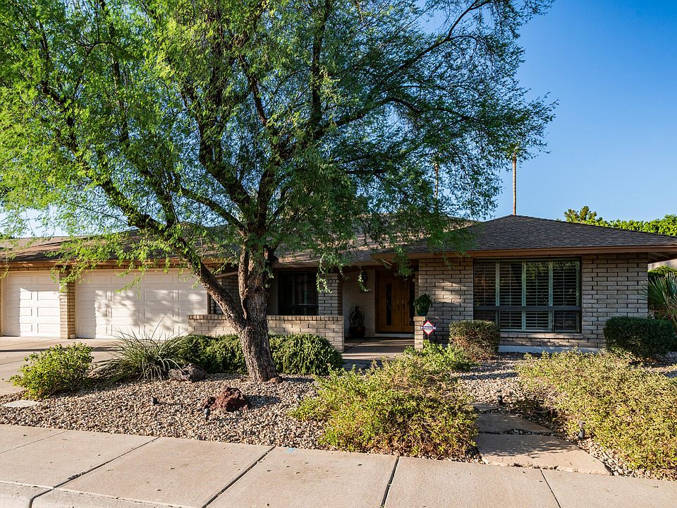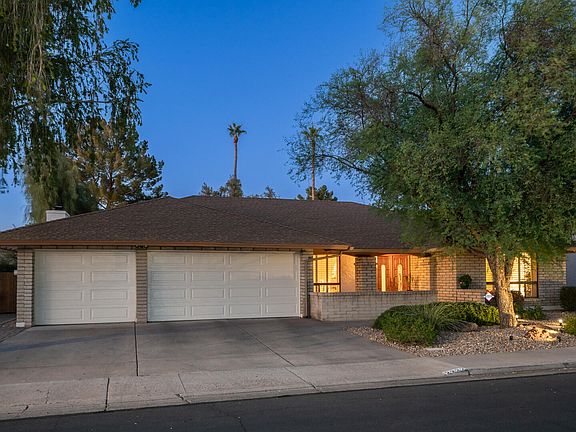 Beautiful home with attention to detail and pride of ownership! This updated home sits on a great interior lot with a gorgeous professional designed backyard! Enjoy entertaining in the beautiful kitchen with white cabinetry & beautiful hardware, drop in cooktop, wall oven below & stainless dishwasher, custom cabinetry on refrigerator to give a custom look! Kitchen looks into the family room with a beautiful brick fireplace & oversized windows. Sliding glass door leads you out to the backyard with extended pavers, turf, pergola, extended patio & mature landscaping, low voltage lighting to give an ambiance glow. Master has beautiful wood plank tile, bathroom has been updated with beautiful cabinetry, vanity wall tiled to ceiling, amazing walk-in shower, dual closets & dual vanities. Spacious secondary bedrooms great for kids or guests! Secondary bathroom has been updated and has a door out to the backyard for entertaining guest! Double door entry leads you to the formal living and dining rooms that are spacious and can be used as flex space! Upgrades include diagonal laid tile, wood plank tile flooring in master and office, wood shutters, custom window treatments, new garage doors installed 2023, new water heater just installed, and new HVAC installed in 2022. This home is ready for move in and you will love the attention to detail and personality this home has. Dobson Ranch is a wonderful community which has 7 lakes, golf course, 3 rec centers, community pools, spas, tennis & pickleball courts, with shopping and dining nearby. Close to 101, 202, 60 and 10 freeways and a short drive time to the airport, malls, and great entertainment! The Toto Washlet Bidet in the master bathroom stays. Yard sheds stay. Backyard potted plants stay and are watered automatically. Auto blinds in backyard.