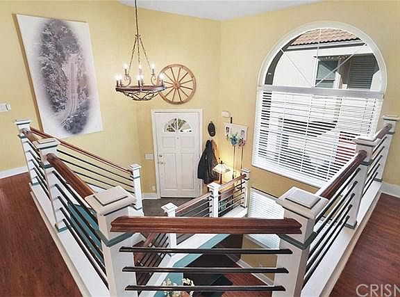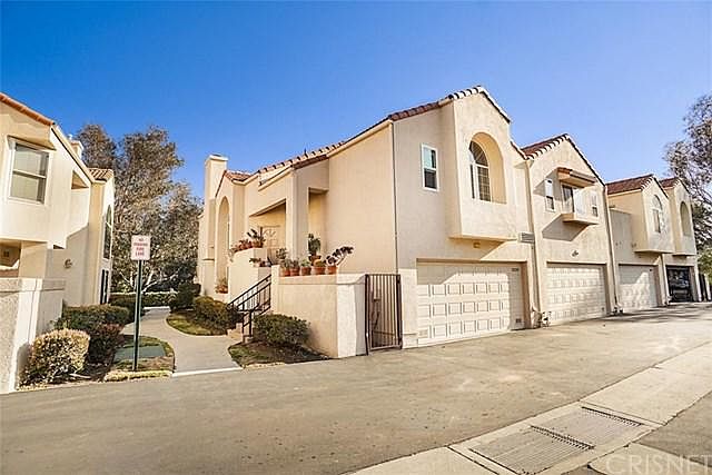 INCREDIBLE, GORGEOUS, FANTASTIC!! Rarely does a full remodel home like this come up for sale. Prepare to be impressed when you enter this superbly maintained and very upgraded Cal West end unit townhome. Boasting an array of quality finishes, this immaculate 3-bedroom, 2.5-bathroom unit features almost 1,600 sq. ft. of light filled living space with soaring ceilings, gleaming wood laminate floors, recessed LED lighting, multiple balconies/patios, newer central air & heat, dual pane windows, crown moldings and in unit washer/dryer. Open-concept living with cozy fireplace, custom breakfast nook and chairs, and a sensational cooks DREAM kitchen with 10 ft. granite slab island, quartz countertops, custom cabinetry with pull-outs, and a suite of LG stainless steel appliances. Main bedroom sits just off the living area and has a large cedar lined walk in closet with built in shelves, ensuite private bath with custom walk-in shower, granite vanity and dual sinks. Lower level boasts a comfortable family room, 2 additional secondary bedrooms, a fully remodeled hall bath with oversized tub, and access to a relaxing and tranquil covered patio with water feature, and views of the nature path. In addition, the unit includes an upper level balcony with custom built-in table, direct access 2 car garage with storage. Included located just minutes from hiking trails, easy freeway access, trendy restaurants, and shopping at the new Vineyards at Porter Ranch, and more!