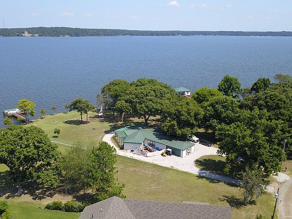 PANORAMIC VIEWS FROM A LAKEFRONT PROPERTY FOR SALE! AMAZING views are yours from this waterfront property in East Texas on beautiful Lake Palestine! Known as Henderson Point, this property has panoramic open water views facing North, East, and South. The home was built in 1972 but was updated in 2013 (please ask for the list of Updates/Upgrades). A Living room with stone wood burning fireplace provides 3 walls of windows overlooking the lake! Master Bedroom on lake side is the perfect spot to open your eyes and be greeted by the breathtaking surises from this vantage point! Due to the shape of the home taking complete advantage of lake views, the two guest rooms also benefit from being lakeside! The entrance of the home is on the right (south) side through the Great Room, with adjacent kitchen complete with pantry, stove, microwave and dishwasher. There is also a large utility room with space for extra refrigerator and lots of storage plus a two car garage with doors at each end for easy access. At the shore, rest awhile at the pier, with inviting breezes and stunning views. You really must see and feel beauty of this location in Blue Water Key. Neighborhood amenities include picnic area with boat launch and fenced trailer storage area. Schedule an appointment - your lake life begins here!