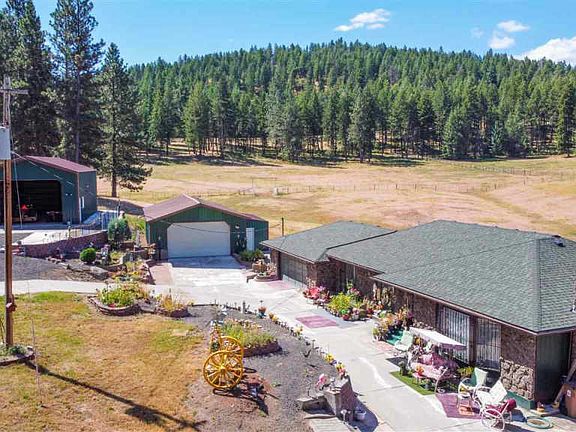 Colbert Ranch on over 43 expansive acres of private land. Perfect close-in location for the equine & livestock enthusiast! 4 separate lots with three wells encompass the estate with forever extending beautiful white vinyl country fence. Home boasts 2 newer shops with concrete floors and a horse barn with 10 horse stalls, outdoor arenas, cross fenced areas and tack rooms. Ranch style home on a circle driveway is 3,600 sq ft with a walkout daylight basement. Home has a updated baths on both floors. Tons of possibilities with this home having newer roof, new gas furnace and central AC along with new exterior paint. Views are amazing on this property. In the Mead School District with that western ranch seclusion not too far away from Spokane. Bring your cowboy hat!