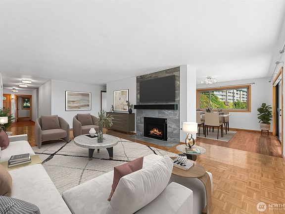 Gas fireplaceBrand-new kitchenHuge deckOlympic mountainsUpdated lightingWalk-in closetsExpansive primary suite