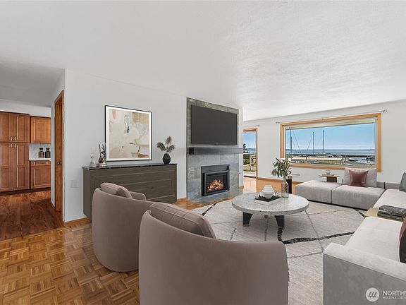 Endless sunsets & sweeping views of the Puget Sound, Olympic Mountains, & islands await from this fully remodeled, nearly 1,700 sq ft 3-bed, 2-bath home. Expansive primary suite w/ attached primary bath, All 3 beds have walk-in closets. Upgrades include: solid wood doors, a dry bar, gas fireplace, Motorized shades, new flooring & updated lighting throughout. Fully accessible w/ zero steps, wide doors, elevator. Brand-new kitchen boasts new cabinetry, quartz counters, & a Sub-Zero refrigerator. Huge deck provides the perfect setting for entertaining w/ incredible views. Gated entry, 2 parking spaces & extra storage. Rare opportunity on the Des Moines waterfront, a highly sought-after spot for waterfront walking, dining, & entertainment.