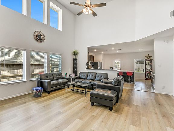Beautiful two-story home situated on a desirable corner lot in the sought-after Cypress Green Subdivision. This spacious residence features four bedrooms, two-and-a-half bathrooms, an inviting upstairs game room, a dedicated home office, and high ceilings throughout the main living areas perfect for an open, airy feel. The open-concept floor plan flows seamlessly into the kitchen and dining spaces, complete with granite countertops and stainless steel appliances. Washer, dryer, and refrigerator are included, and the home offers a covered patio ideal for outdoor entertaining. The primary suite provides a peaceful retreat with a private bath and generous closet space. Enjoy resort-style amenities including a sparkling swimming pool, fitness center, playground, and scenic walking trails. Conveniently located near shopping, dining, and top-rated schools, this home combines comfort, style, and exceptional community living.