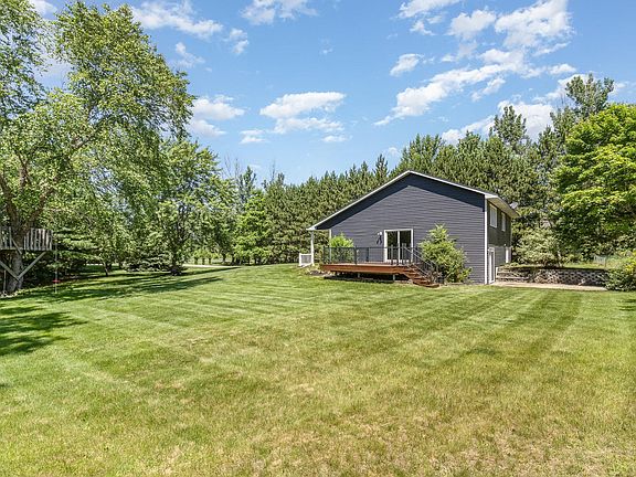 Set on a beautiful nearly 2-acre lot with mature trees, this freshly painted and newly carpeted 3-level split offers a comfortable and inviting layout. Inside, you’ll find hardwood floors and bright, open living spaces perfect for everyday living. Large front-facing windows above the kitchen sink bring in natural light and offer peaceful views of the front yard. The open layout is great for gathering, with upper-level spaces overlooking the kitchen, a lower-level walkout leading to a patio, and a main-level walkout to a spacious deck overlooking the expansive backyard. The primary bedroom features a walk-in closet and a convenient walk-through bathroom. Conveniently located not far from Hwy 65, with a park just down the street, this home offers the perfect blend of indoor comfort, outdoor space, and accessibility.