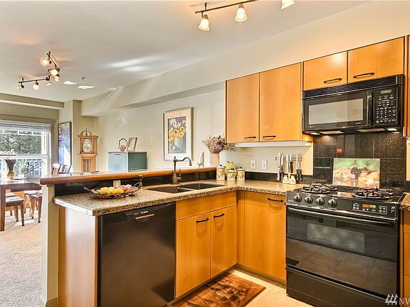 Fantastic location in the Marina District! A short walk to Des Moines Marina, Fishing Pier, Beach Park, and Trail. Enjoy Anthony's HomePort, The Quarterdeck, and many other restaurants and shops. Home has a beautifully updated kitchen, recently painted, new water heater, radiant floor heating, and a spacious living area with a gas fireplace! Has an office/den, can easily be converted to a 2 bedroom. Building has secured lobby entrance, gated garage and an elevator. This is a great place to live!