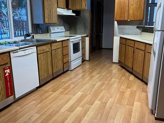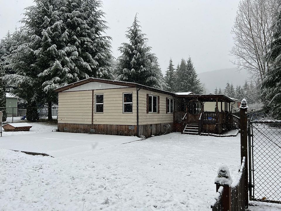 Welcome to Forrest Loop this 3 bed 2 bath manufactured home has a HUGE fully fenced yard and storage shed. Walking in you are welcomed with an amazing mountain view outside of your big living room w/large windows that let in a ton of natural light! The kitchen is a great size with a bunch of cupboard & counter space, and in kitchen dining room. You also have a great add on that could be used as a play room or large office. The bedrooms are all a great size with the primary having its on master suite with 5 piece en suite w/ a nice soaking tub, and walk in closet.