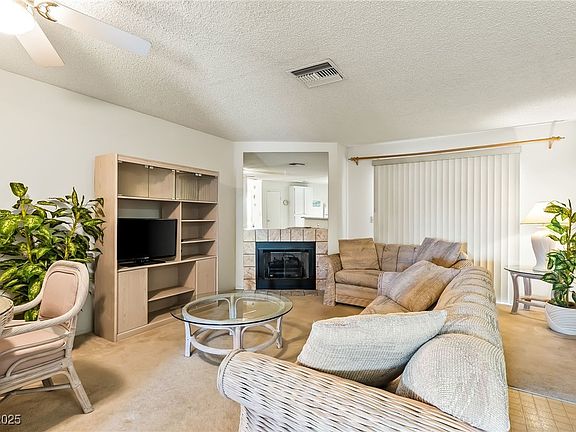 Community poolOverlooking the poolCovered patioMature landscapingSliding glass doorWood burning fireplaceCeiling fans