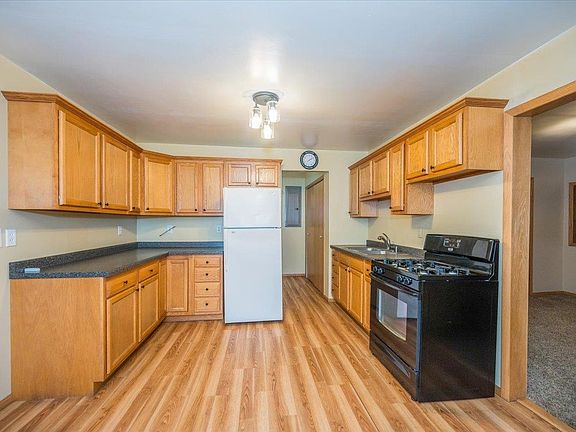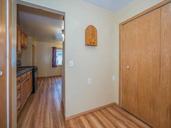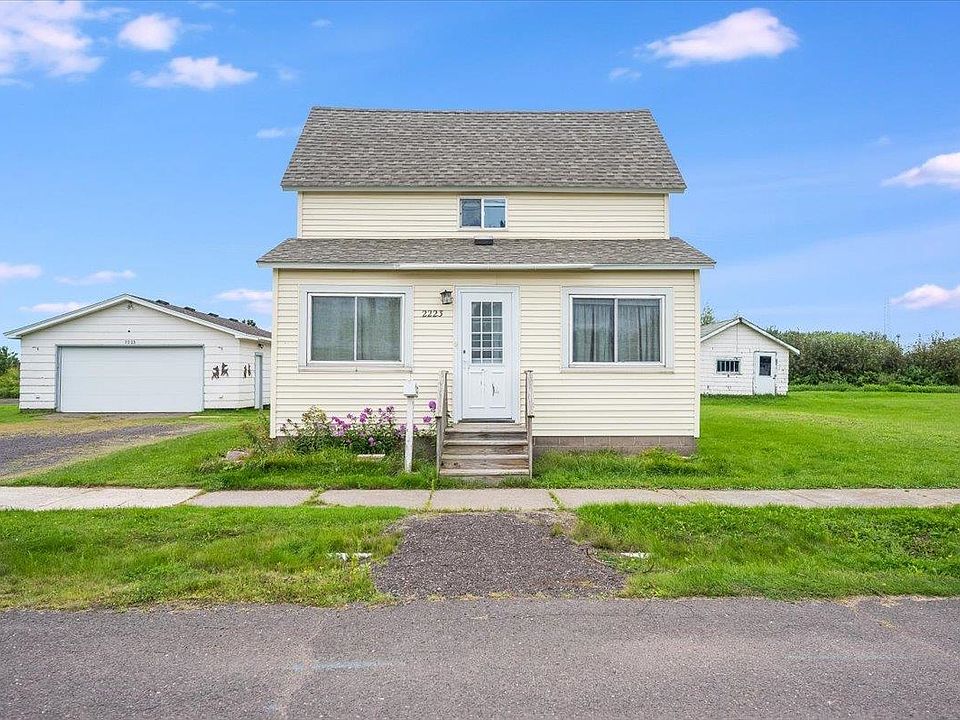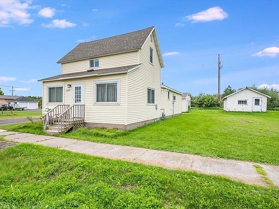 OPEN HOUSE SUNDAY 10/5 12:30-2:30pm. BACK ON THE MARKET DUE TO UNFORTUNATE PERSONAL CIRCUMSTANCES FOR THE BUYER 4 Parcels, 3 Garages, 2 Bedrooms, 1 Bath looking for its next owner! Check out this cute and cozy home on 4 parcels in town! The main floor has a roomy eat-in kitchen with walk-in pantry, a dining room, living room, and a main floor bedroom. This level also has a large back entry with washer and dryer, a storage room, and the full bath. Upstairs is the second bedroom. This home has lots of storage, newer vinyl windows and siding (2002), newer roof (home 2014, garage 2019), and a newer furnace (2022). Outside in the expansive yard are 3 garages, the biggest of which is insulated and has a fuel oil furnace. Book your showing today!