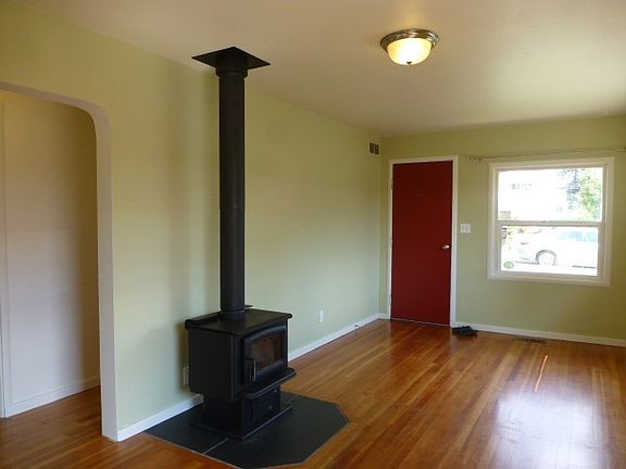 - Fireplace features: wood stove