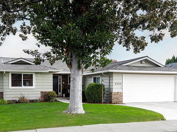 Eye-catching home in the heart of Santa Clara, freshly painted inside and out, with natural light streaming through two skylights and luxury vinyl flooring. The step-down living room and adjacent family room with a wood-burning fireplace create inviting spaces to relax or gather with friends and family. The dining room with wainscoting flows to a bright kitchen featuring quartz countertops, a 5-burner cooktop and abundant cabinetry, perfect for everyday meals or entertaining. Two bedrooms designed for relaxation, one with a charming window seat ideal for reading or morning coffee. The spacious primary retreat has new carpet, dimmable lights, ceiling fan, and French-style glass door opens to the backyard, where mature trees provide shade and privacy. A finished garage with storage and workbench, perfect for projects, or hobbies. Enjoy lush lawns framed by magnolia, cypress, and citrus trees. Centrally located near Target, Santa Clara Town Center, Apple, NVIDIA, parks, and commuter routes. This home blends comfort, convenience, and Silicon Valley living.