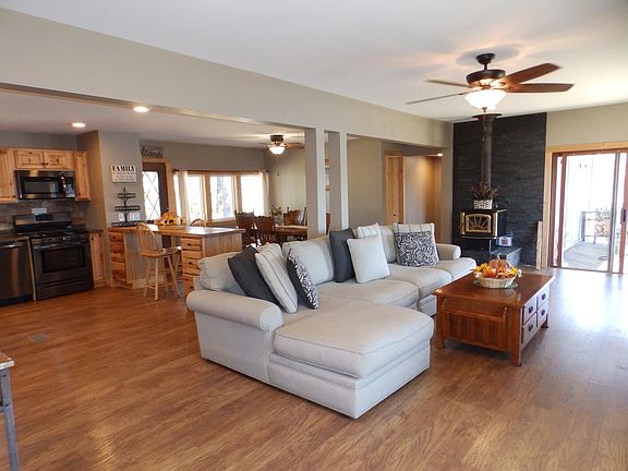 Escape to your private retreat on nearly 7 acres with over 1,250 ft of pristine lake frontage, complete with your very own island. This 3-bedroom, 3-bath home features a brand-new roof, walkout basement, and a custom-tiled master suite offering stunning 180-degree lake views. Designed for comfort and convenience, it includes an attached 3-car garage, a 24x24 supplemental garage, and a massive pole building—perfect for storage, hobbies, or equipment. With unmatched privacy, expansive views, and direct access to the water, this property is a rare find that blends luxury living with incredible outdoor potential.