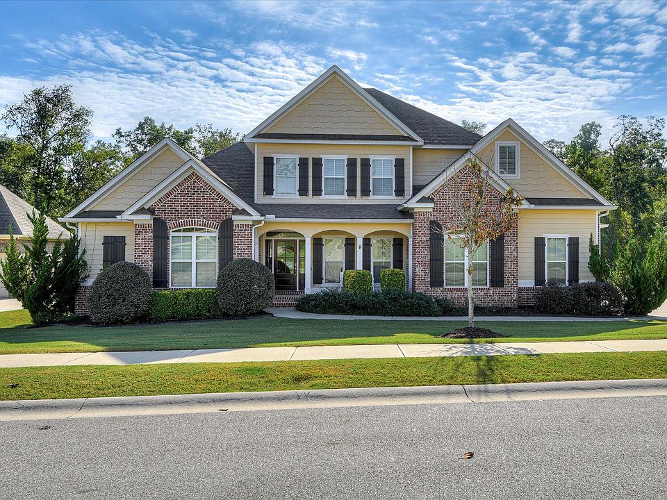 Welcome to this beautiful two-story brick home in the sought-after golf neighborhood of Bartram Trail. This custom-built beauty sitting on half an acre backs to tranquil greenspace allowing for a private backyard retreat. Upon entering, you are greeted with tall ceilings, hardwood floors and opens to the formal dining room with judge's panels, coffered ceiling and an abundance of detailed trim work. The Great room is filled with natural light and built-ins flanking both sides of the gas fireplace, a perfect spot to cozy up to. Ideal floorplan for entertaining with a wonderful flow between the great room, Keeping room and the crowd-winning oversized island. Kitchen boasts of custom cabinetry with lighted glass fronts, designer lighting and a stunning 6-burner gas stove with custom-hood that boasts of detailed tile work and pot-filler. In addition, the kitchen has an over-sized pantry, granite countertops, built-in stainless-steel appliances, and upgraded refrigerator. The spacious main-level Primary bedroom is equipped with loads of space to include a sitting room with fireplace. The spa-like en-suite bath hosts a tiled shower, free-standing soaking tub, double vanity with beautiful bowl-sinks an expansive walk-in closet and a separate Rinnai tankless water heater. In addition to the main bedroom on the first floor, this home has a secondary bedroom, full bath and laundry. Upstairs consists of three bedrooms, a jack-and-jill bath, an additional 3rd full bath and the expansive Media/Game room. Have stuff? No worries with the exceptionally large walk-out attic storage space! Additional closets and storage in every nook and cranny! Even the garage has additional storeroom space. Let's not forget the 3rd bay golfcart garage. All this right in the middle of the premier 18-hole golf course, clubhouse, access to the Tavern on the Trail restaurant, miles of nature trails, frisbee golf, and a neighborhood resort-style, Jr Olympic pool. Bartram Trail offers RV and boat storage rentals as well. Columbia County schools and just minutes from Patriots Park, Fort Gordon, I-20, and local shopping.