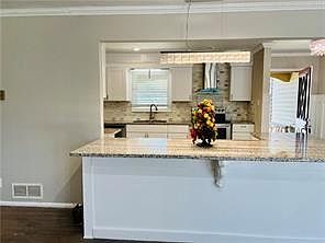 Prime location just minutes from I-285! This beautifully updated 3-bedroom, 3-bath home offers modern comfort and style throughout. The kitchen features luxurious Italian marble flooring, granite countertops, stainless steel appliances, brand-new cabinetry, and an open-concept layout with a seamless view into the family room. Bedrooms boast elegant hardwood floors, while the family room showcases durable luxury vinyl flooring. Recent upgrades include updated bathrooms, new light fixtures, ceiling fans, a newer roof, and an updated HVAC system. Enjoy outdoor living with a spacious deck overlooking a level backyard. The property also offers a long driveway for ample parking and is conveniently located near shopping, dining, and entertainment.